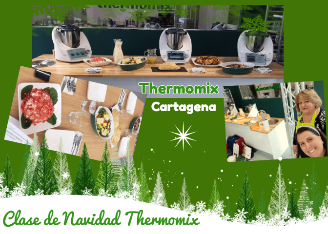 Ya estamos en Navidad y en Thermomix® Cartagena se nota! Algun@s de nuestr@s mejores clientes ya han podido disfrutar de las primeras clases especiales de navidad, y nosostr@s con ell@s! Y como muestra.... un botón! Aquí os dejo un collage con algunas fotos de la clase de navidad de ayer!
